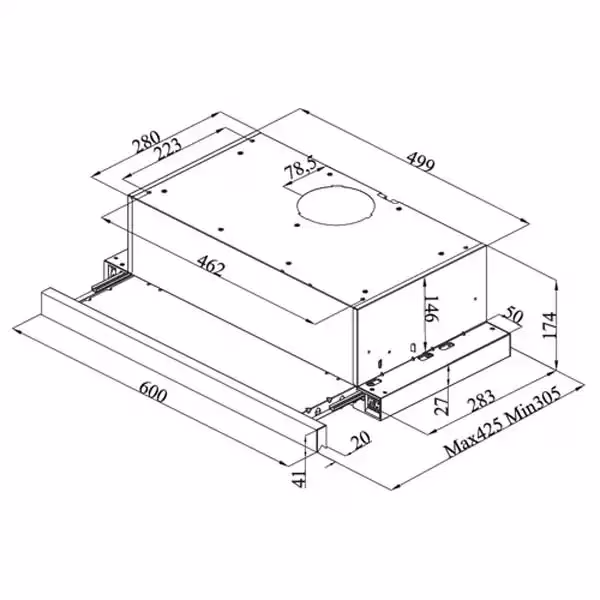 | Dimenzije (ŠxVxD): | 60 x 17.4 x 30.5 – 42.5 cm |